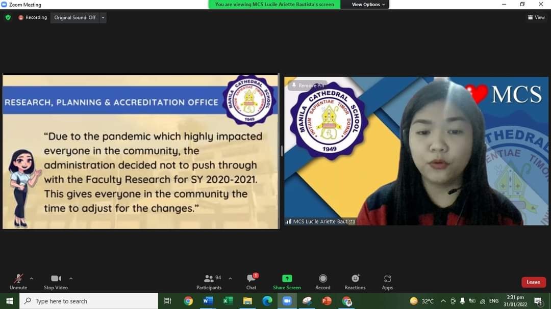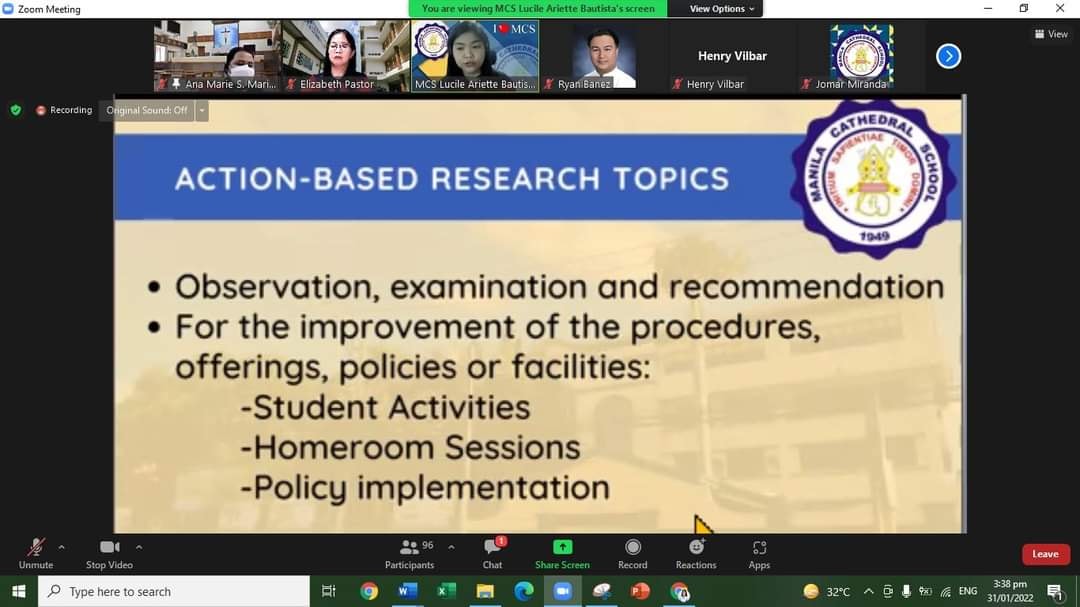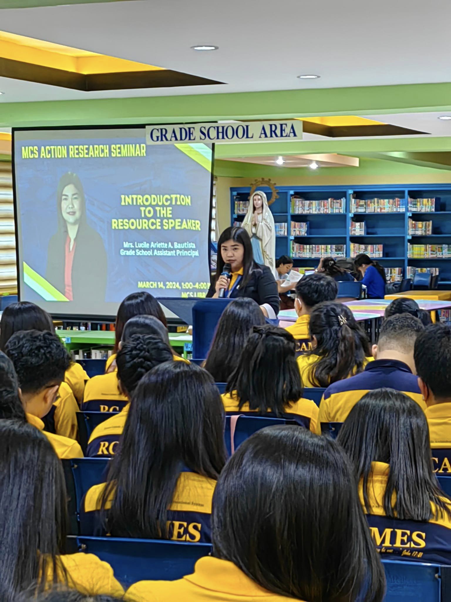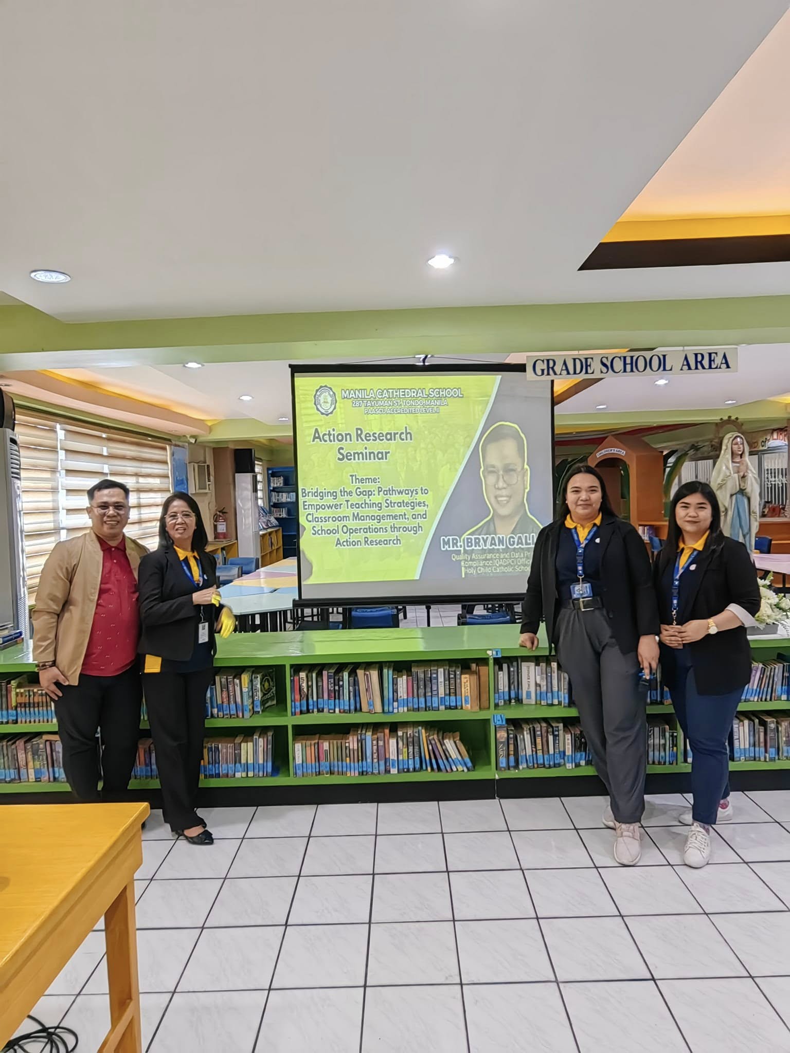 The Manila Cathedral School and Mr. Bryan M. Gallos, QADPC of HCCS, conducted a successful seminar on Action Research for all MCS Personnel last March 14, 2024, at the MCS Library. This seminar allows for greater dissemination of action research papers to improve and update existing research methods, while helping develop teaching strategies, classroom management, and school operations.