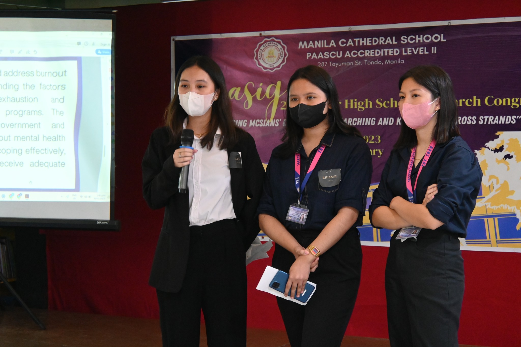 The Manila Cathedral School supported our MCSians in the recent research congress, which significantly helped them improve their critical thinking and problem-solving skills. This series of research presentations conducted by our Grade 12 Senior High School students is interrelated to how we simply find solutions to the problems we encounter in our daily lives, and these are inextricably linked to the quality and success of whatever endeavor we are pursuing.