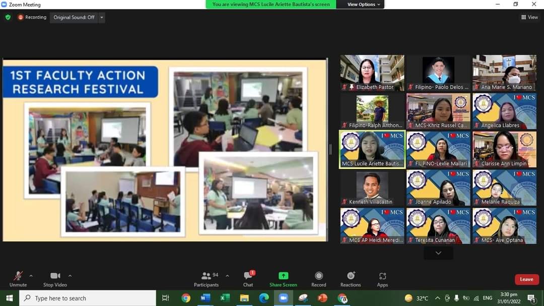 The 1st MCS Faculty Action Research Fest was organized to promote a strong culture of reflective teaching and continuous professional development among faculty members through action research. The event provided an avenue for teachers to present their completed and ongoing action research projects, highlighting innovative strategies and interventions implemented to improve teaching and learning outcomes. The fest fostered the sharing of best practices and evidence-based solutions to instructional challenges.
